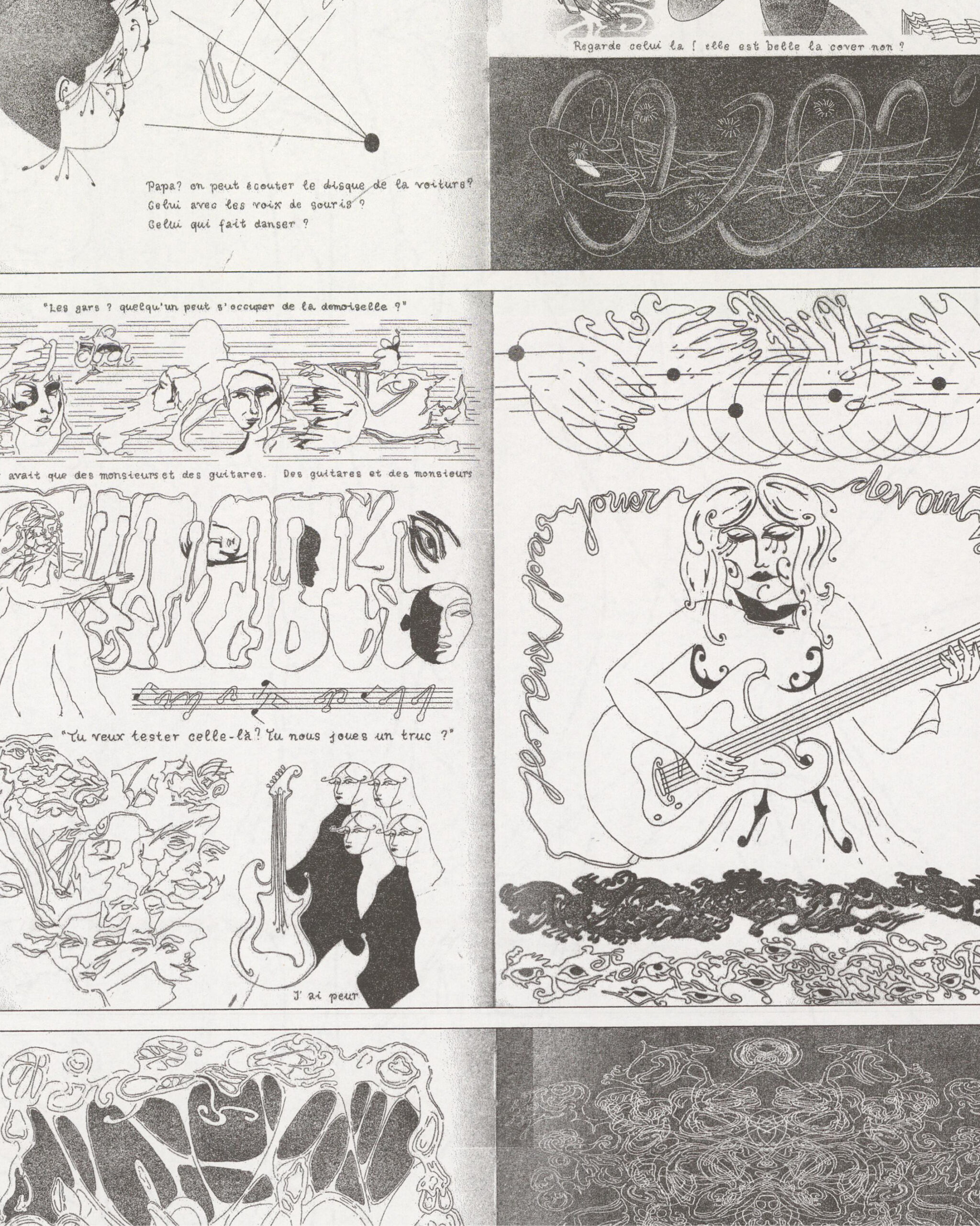 Mon groupe et moi avons été sensibles au projet Sonim Bloom de l’illustratrice Julienne (Cobaud). Le résultat final se compose en trois parties. Premièrement, une enveloppe format (C4) réalisée à l’axidraw et à l’imprimante. Ensuite, une affiche A3, le recto qui retrace les moments clés de la narration et le verso qui est une pleine page d’une illustration. Le dernier élément est un livret A6 d’une interview avec l’autrice Julienne . Ces différentes échelles de format et de techniques reprennent le thème Ressources internes et dynamisent le projet.